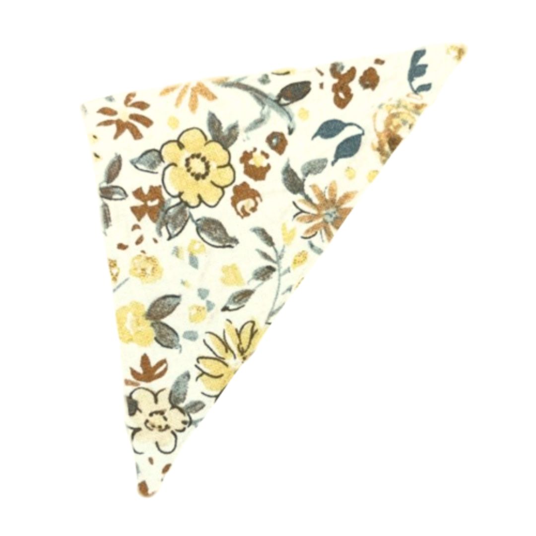 Bandana with a floral pattern. Comes unfolded so you may adjust to desired size. Available in Small, Medium, and Large. Select size to see pricing.