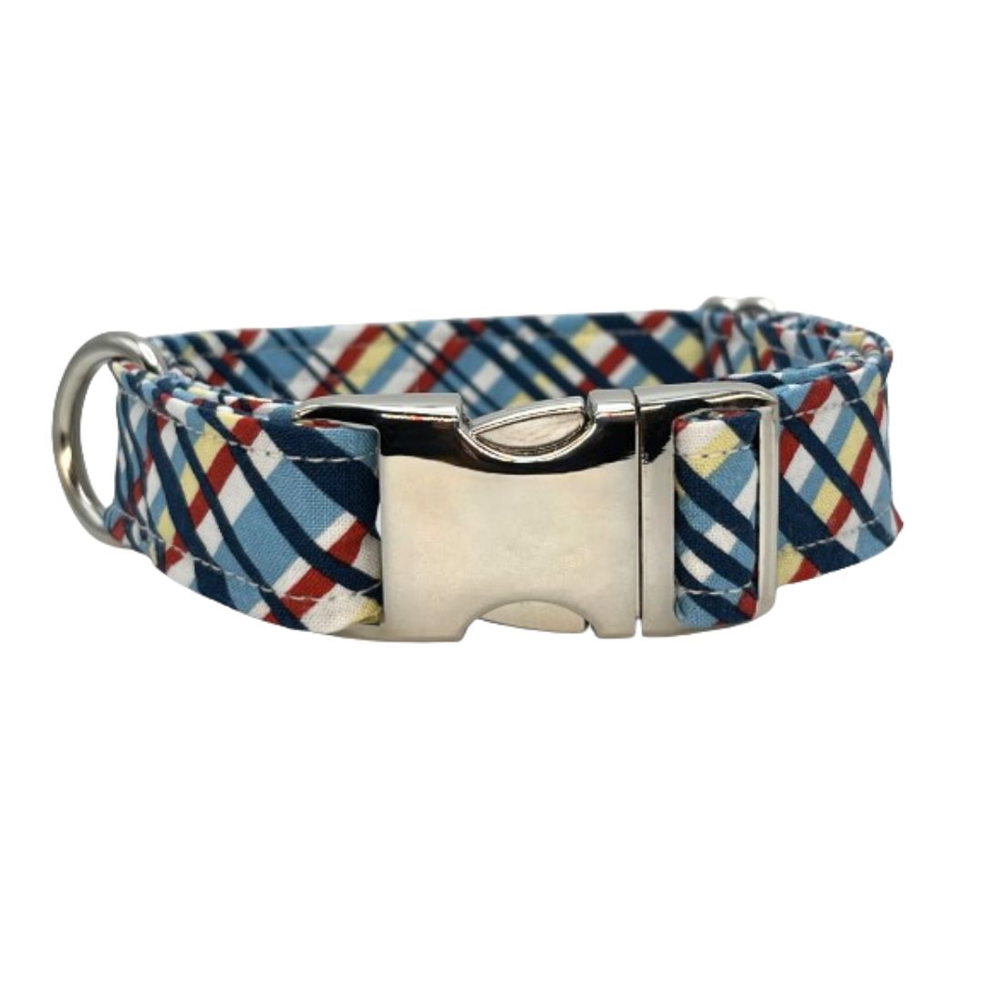 Dog Collar with fun plaid pattern. Available in Extra Small, Small, Medium, and Large with choice of buckle type. Select size to see pricing.
