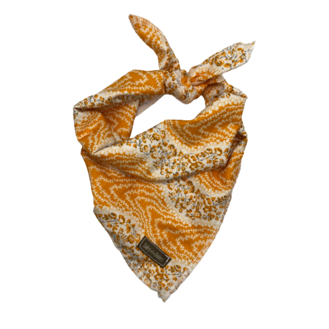 Bandana with an autumn orange pattern. Comes unfolded so you may adjust to desired size. Available in Small, Medium, and Large. Select size to see pricing.