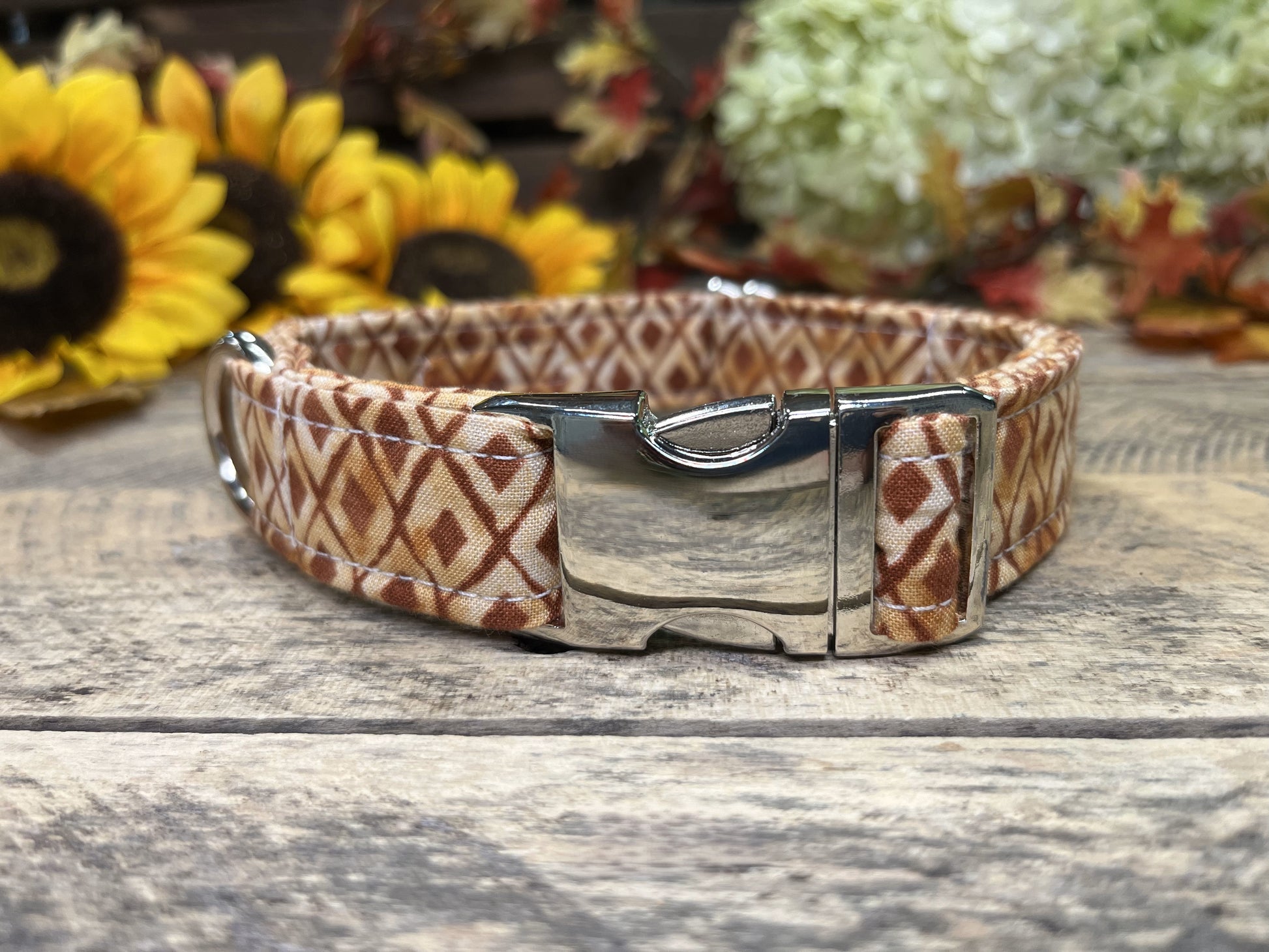 Dog Collar with diamond pattern. Available in Extra Small, Small, Medium, and Large with choice of buckle type. Select size to see pricing.