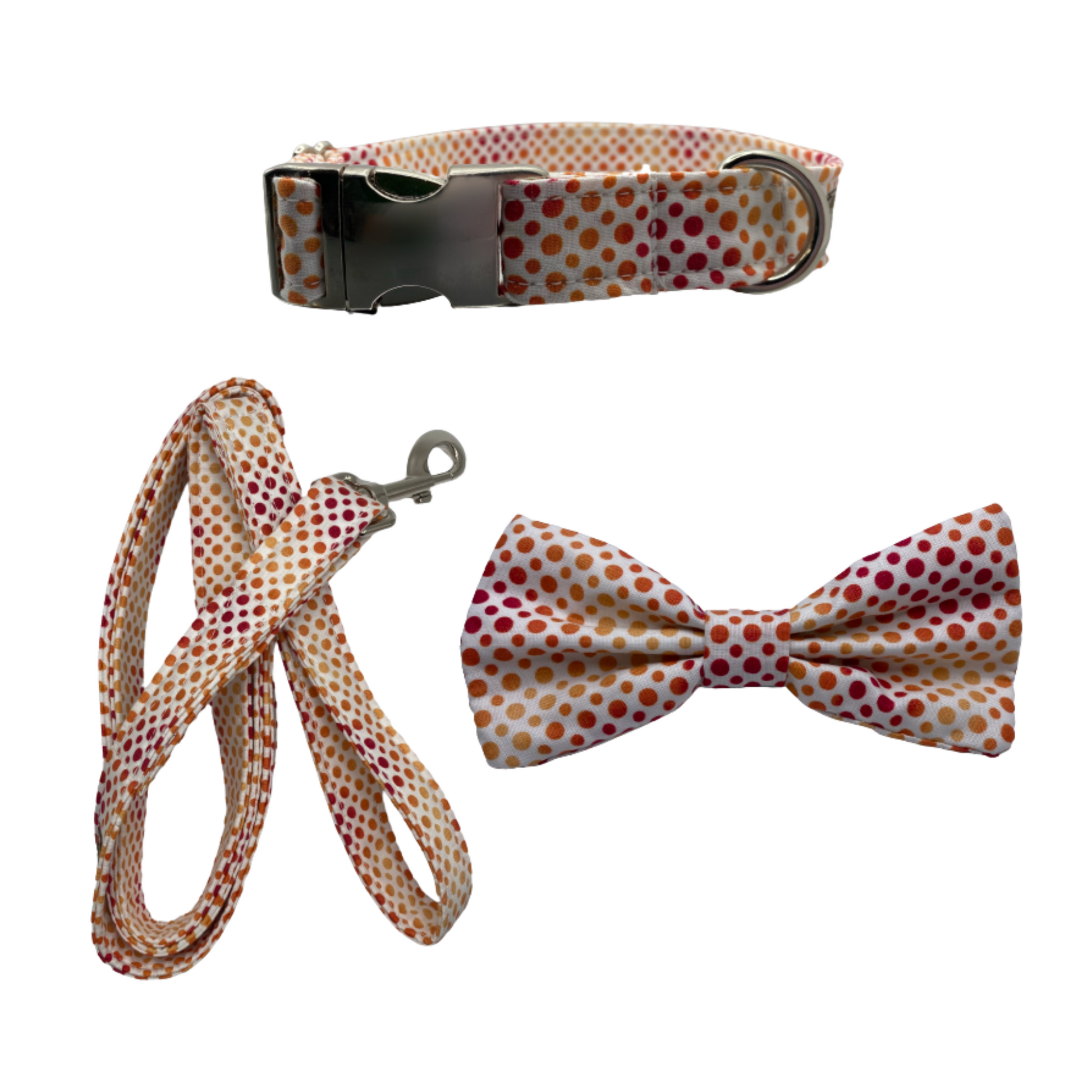 Save 10% off your total purchase by buying a matching set! The Bow Tie Set comes with a matching collar, leash, and bow tie. Multiple sizes and patterns available.