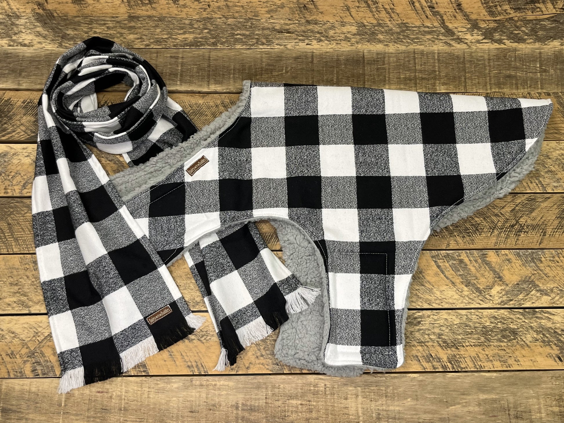 Match your dog in cozy style! Stay warm with our flannel scarves, made with Robert Kaufman flannel to match our dog jackets (listed separately).