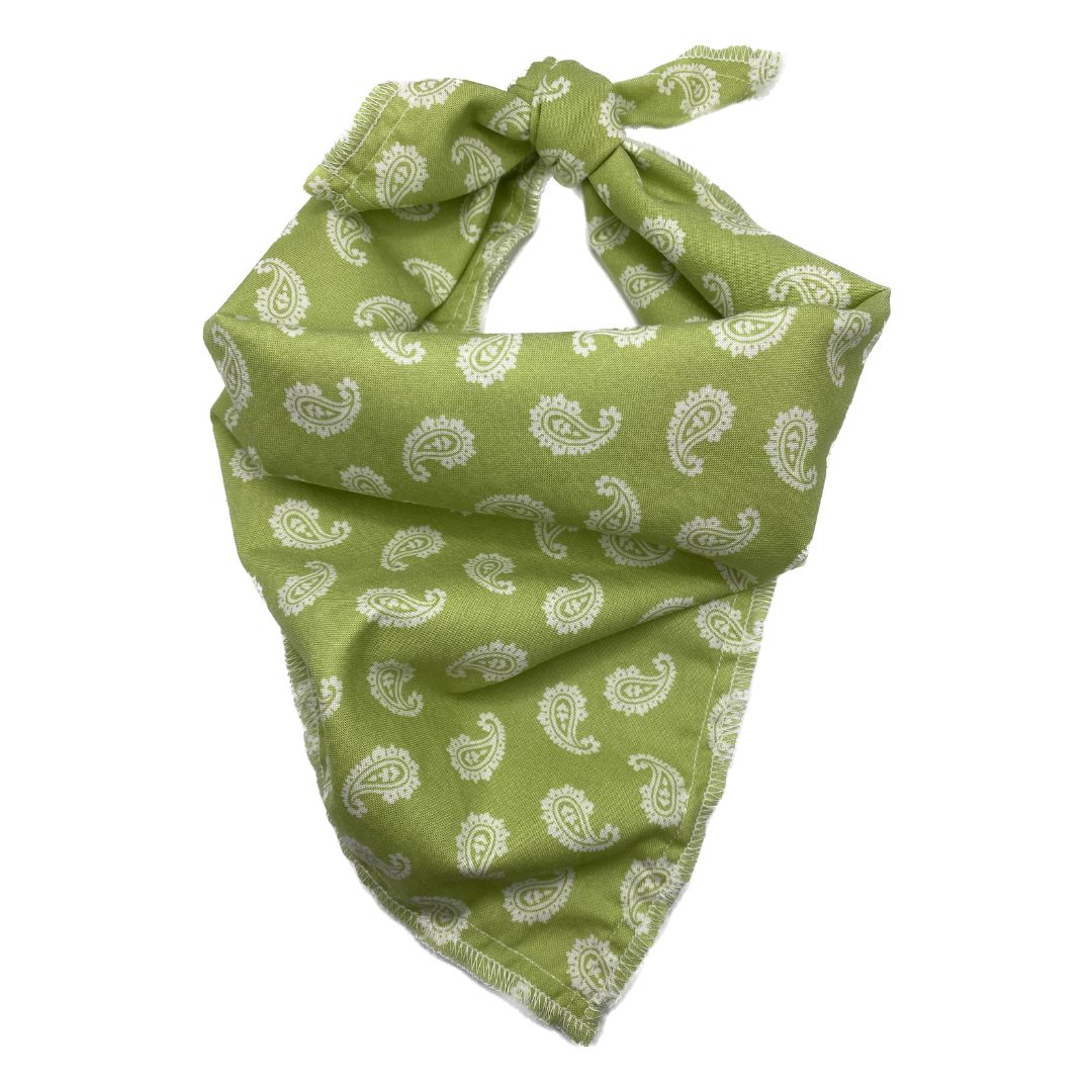 Bandana with paisley "Green Apple" pattern. Comes unfolded so you may adjust to desired size. Available in Small, Medium, and Large. Select size to see pricing.