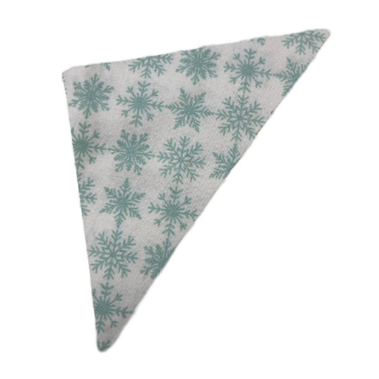 Bandana with a light blue snowflake pattern. Comes unfolded so you may adjust to desired size. Available in Small, Medium, and Large. Select size to see pricing.