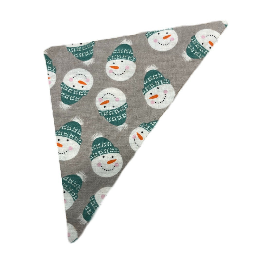 Bandana with snowman pattern. Comes unfolded so you may adjust to desired size. Available in Small, Medium, and Large. Select size to see pricing.