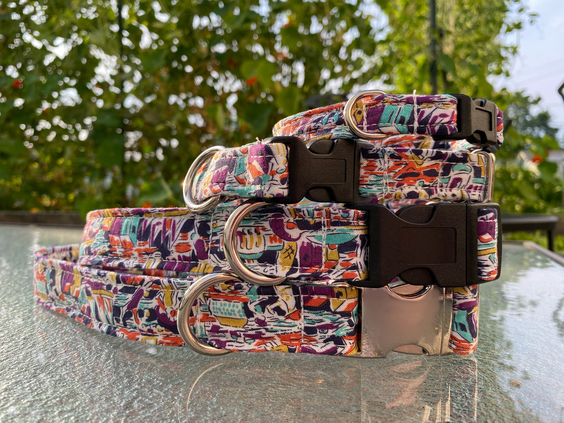 Dog Collar with fun "Party Life" pattern. Available in Extra Small, Small, Medium, and Large with choice of buckle type. Select size to see pricing.