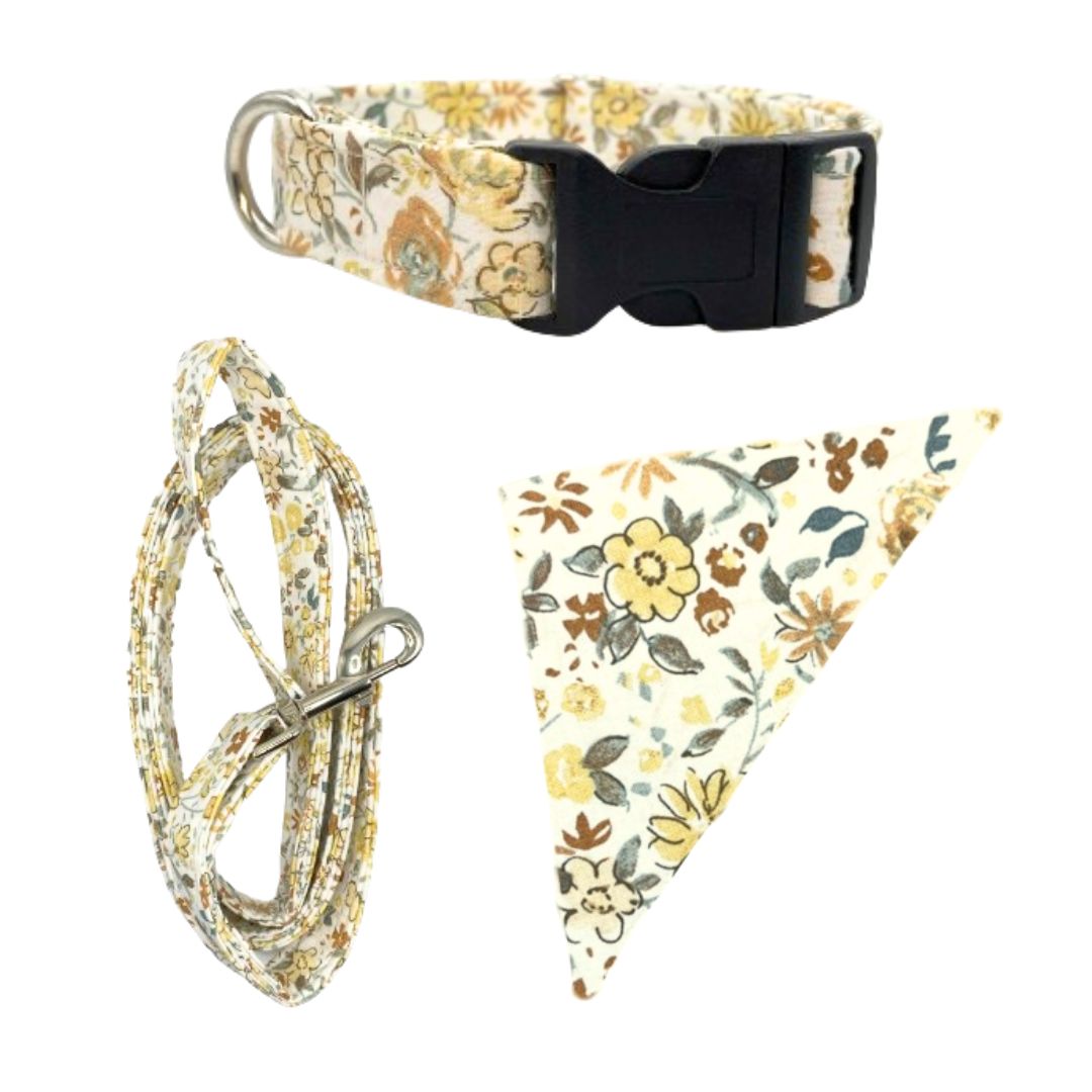 Save 10% off your total purchase by buying a matching set! The Bandana Set comes with a matching collar, leash, and bandana. Multiple sizes and patterns available.