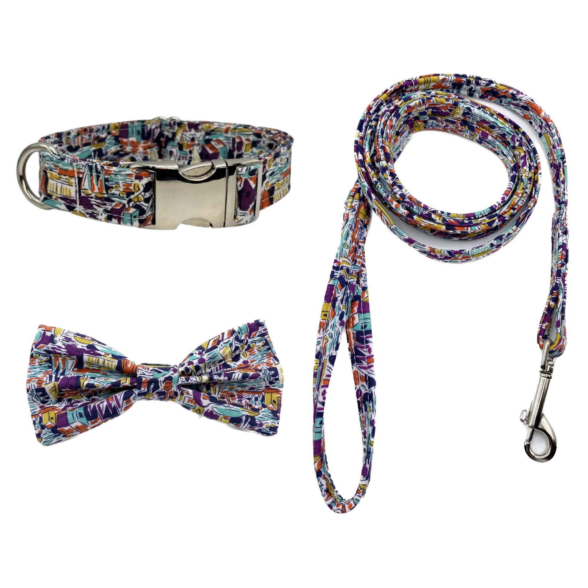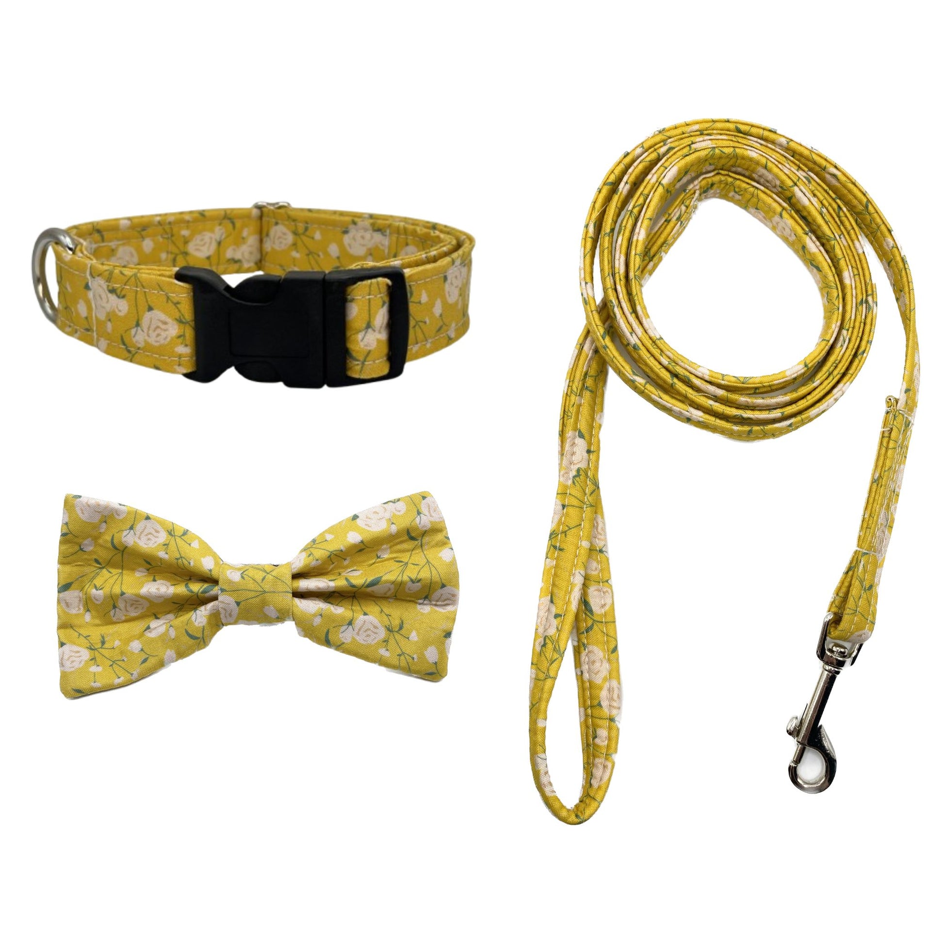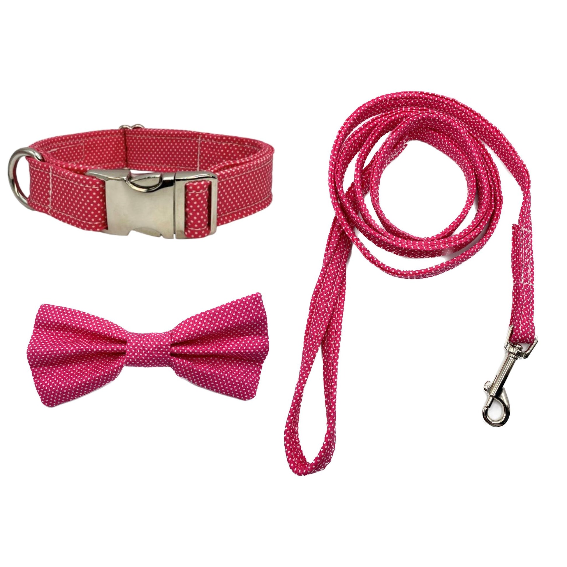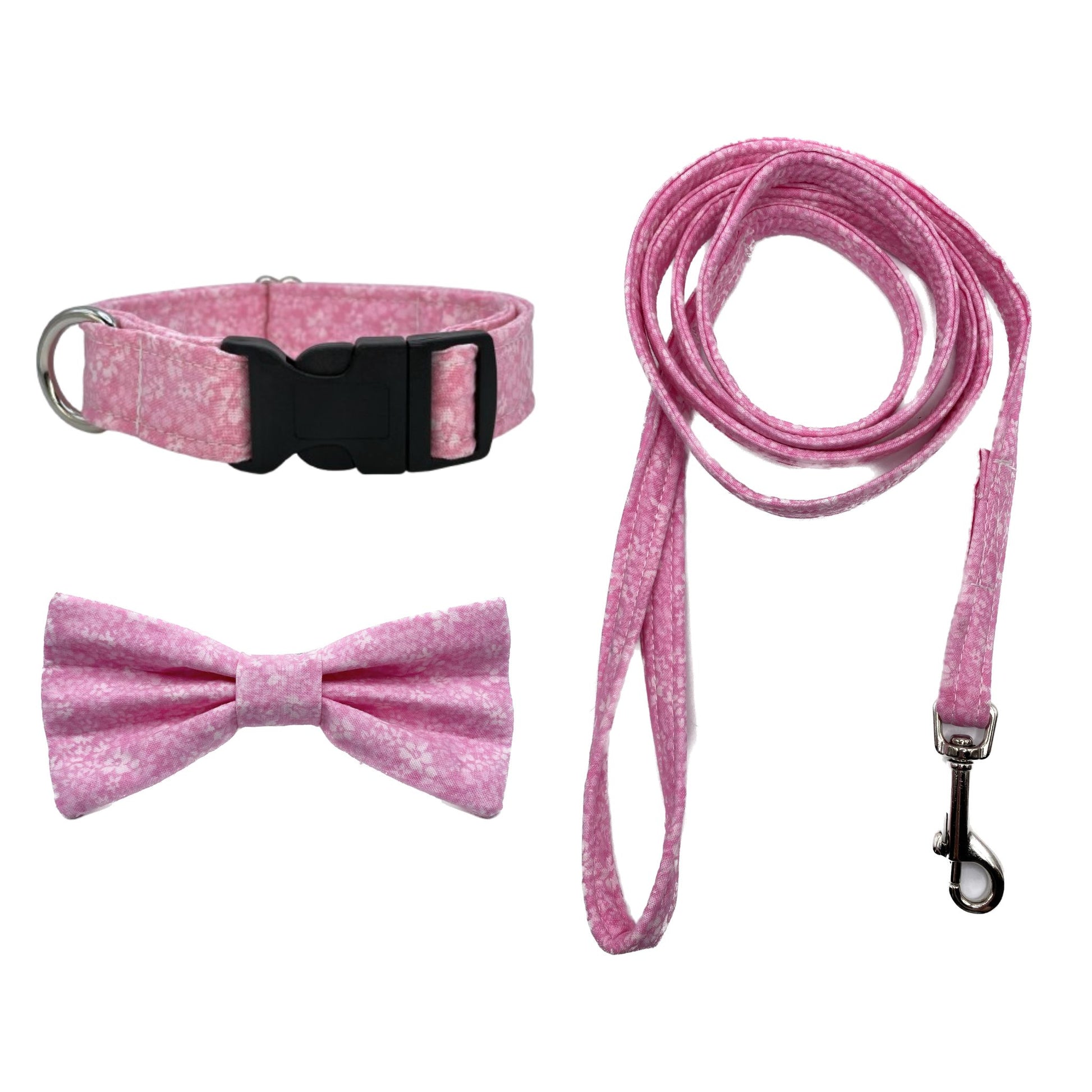 Save 10% off your total purchase by buying a matching set! The Bow Tie Set comes with a matching collar, leash, and bow tie. Multiple sizes and patterns available.