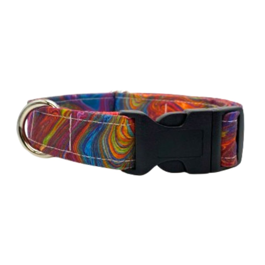 Dog Collar with a fun, colorful pattern. Available in Extra Small, Small, Medium, and Large with choice of buckle type. Select size to see pricing.