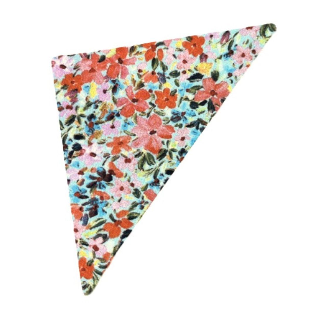 Bandana with a bright floral pattern. Comes unfolded so you may adjust to desired size. Available in Small, Medium, and Large. Select size to see pricing.