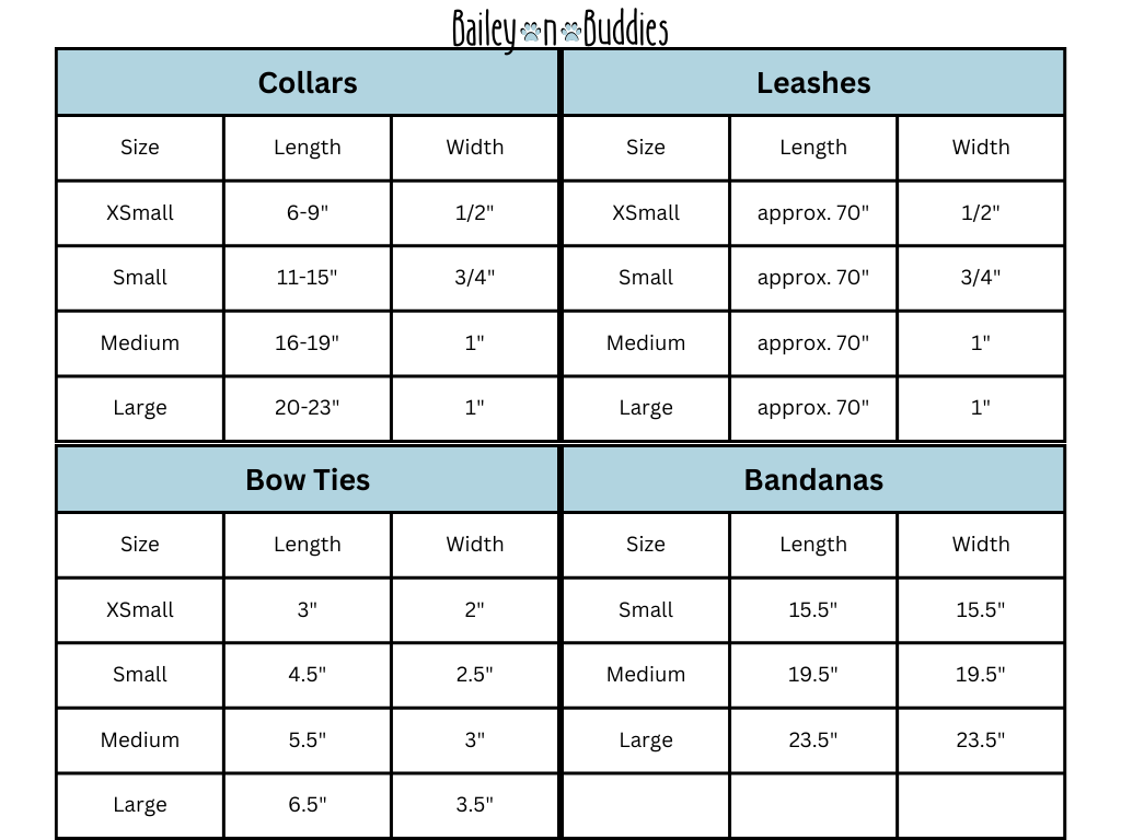 Save 10% off your total purchase by buying a matching set! The Bow Tie Set comes with a matching collar, leash, and bow tie. Multiple sizes and patterns available.